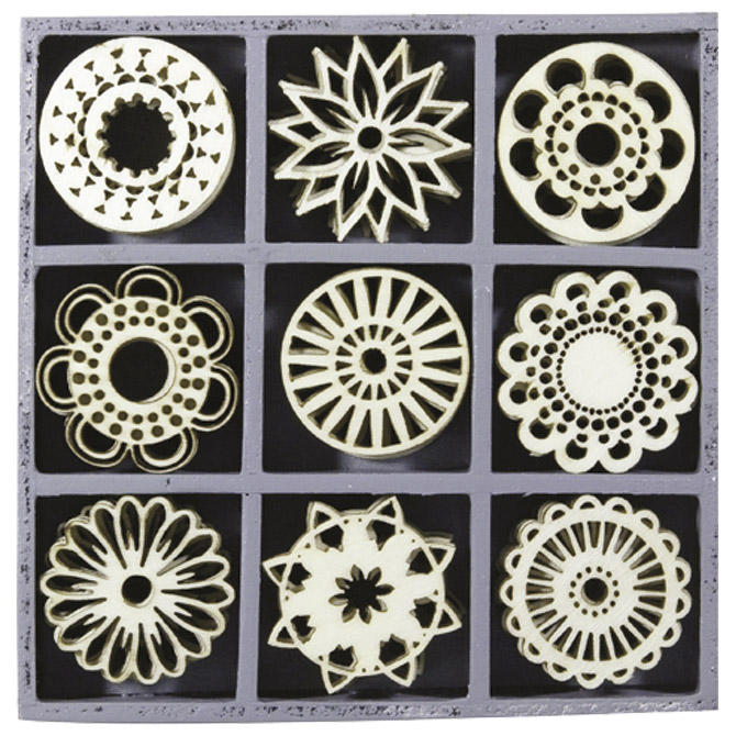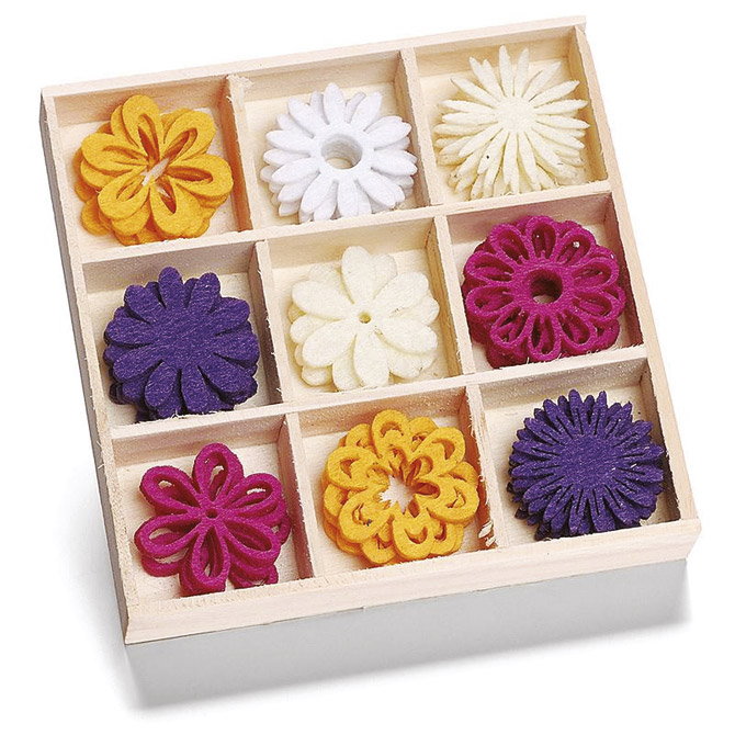 U drvenoj kutiji; dimenzija: 22 mm; za dekoriranje i izradu raznih ukrasa; set od 45 komada