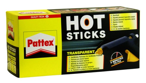 za: brze popravke, montažne i dekorativne radove; za: karton, drvo i drvu slične materijale, metal, gumu, plastiku, keramiku; zagrijavanje 8-10 minuta; rad na temperaturi od 170°C; za fiksiranje potrebne 2 minute; za okrugle patrone fi: 11 mm; prozirno plastično ljepilo; može se bojati; sadrži 6 patrona; blister