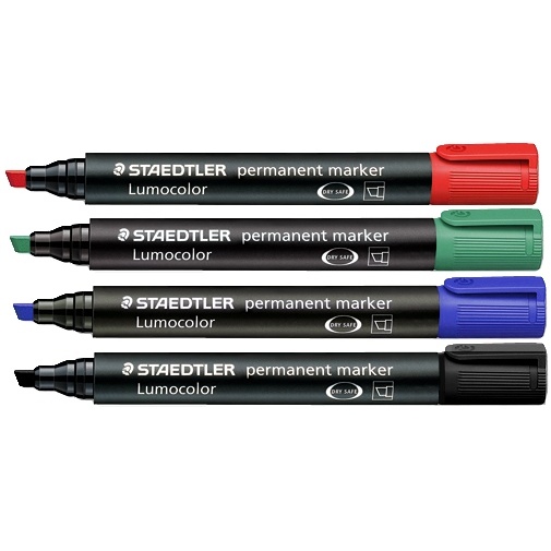 klinasti vrh; širina ispisa 2-5 mm; spremnik i poklopac PP; vodootporan; otporan na UV svjetlost; brzo se suši (pa je pogodan za ljevake); ne razmazuje se; slabog mirisa; primjenjuje se na gotovo svim površinama; mo?e biti nezatvoren danima bez isušivanja (dry safe)